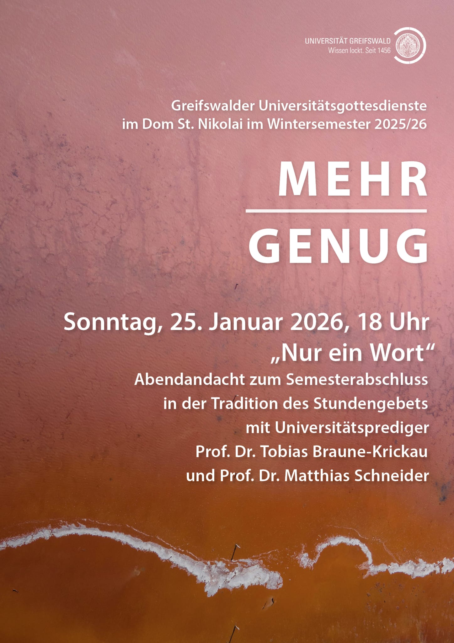 Abendandacht zum Semesterabschluss in der Tradition des Stundengebets mit dem Universitätsprediger Prof. Dr. Tobias Braune-Krickau und Prof. Dr. Matthias Schneider