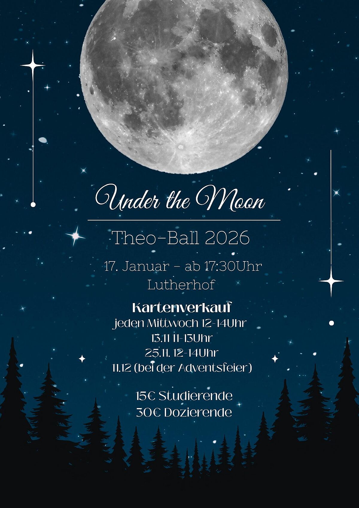 Unter dem Motto "Under the Moon" möchten wir gemeinsam einen unvergesslichen Abend verbringen – mit Musik, Tanz und guten Gesprächen.