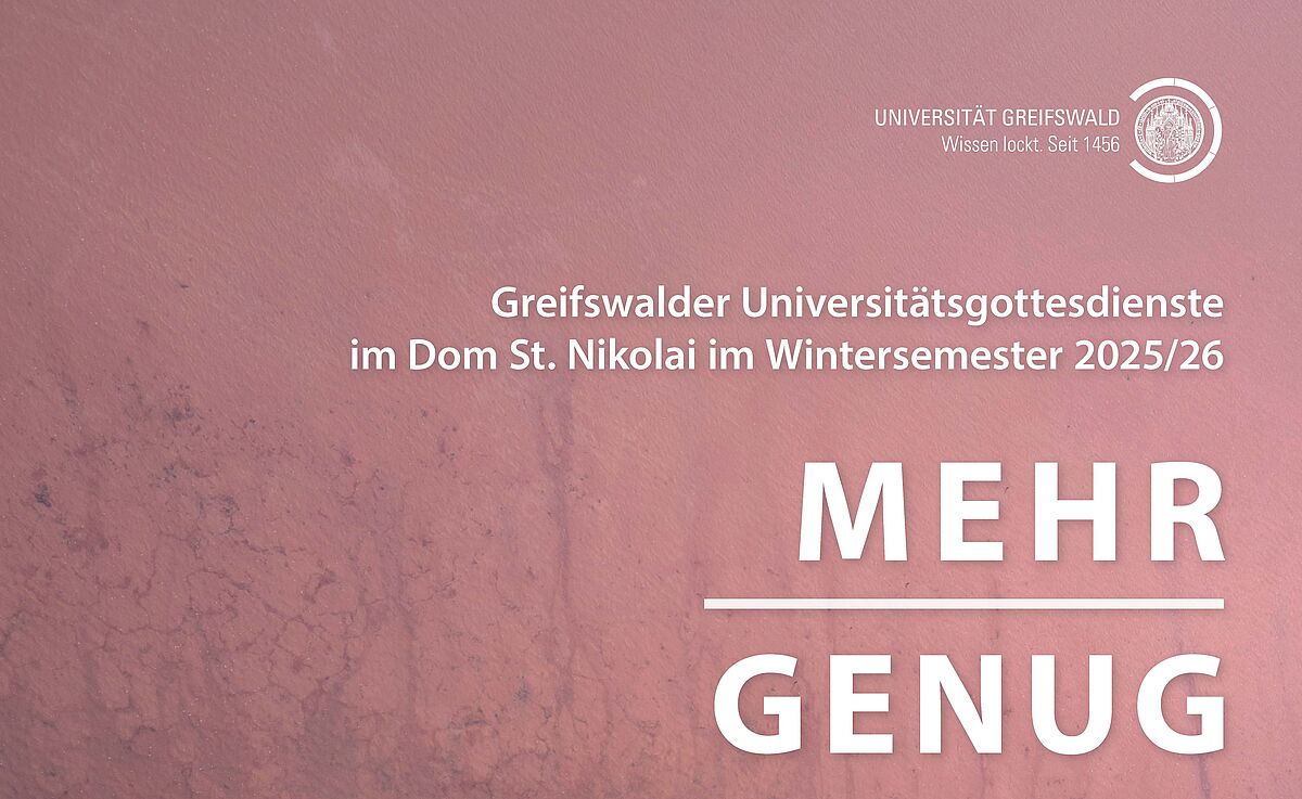 16.11.2025, 18:00 Uhr Universitätsgottesdienst Greifswalder Universitätsgottesdienste unter dem Motto "MEHR - GENUG". Termin anzeigen